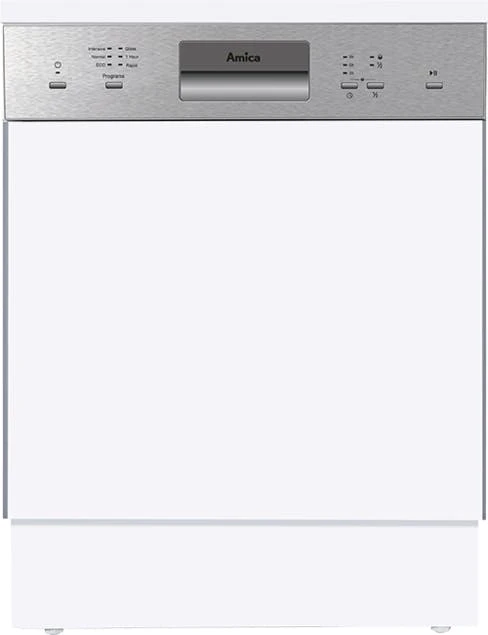 Amica EGSP 14797-1 E. Geräteplatzierung: Halb integriert, Produktgröße: Standardgröße (60 cm), Display-Typ: LED. Anzahl Maßgedecke: 12 Maßgedecke, Lärmemissionsklasse: C, Geräuschpegel: 49 dB. Energieeffizienzklasse: E, Wasserverbrauch pro Zyklus: 11 l, Energieverbrauch für 100 Zyklen: 92 kWh. Breite: 598 mm, Tiefe: 575 mm, Höhe: 815 mm