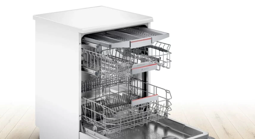 Bosch Serie 4 SMS4HCW48E. Geräteplatzierung: Freistehend, Produktgröße: Standardgröße (60 cm), Türfarbe: Weiß. Anzahl Maßgedecke: 14 Maßgedecke, Lärmemissionsklasse: B, Geräuschpegel: 44 dB. Energieeffizienzklasse: D, Wasserverbrauch pro Zyklus: 9,5 l, Energieverbrauch für 100 Zyklen: 85 kWh. Breite: 600 mm, Tiefe: 600 mm, Höhe: 845 mm