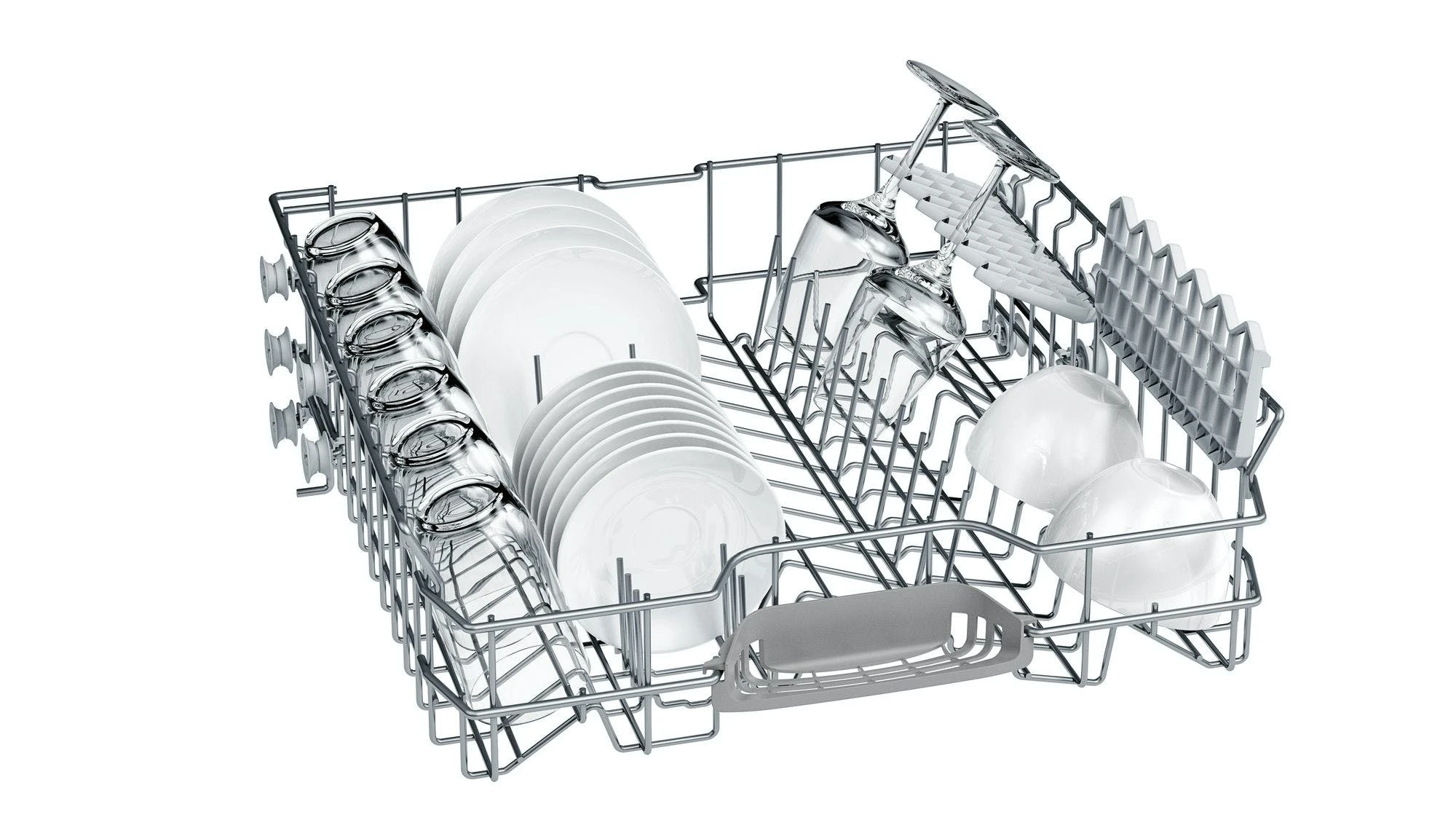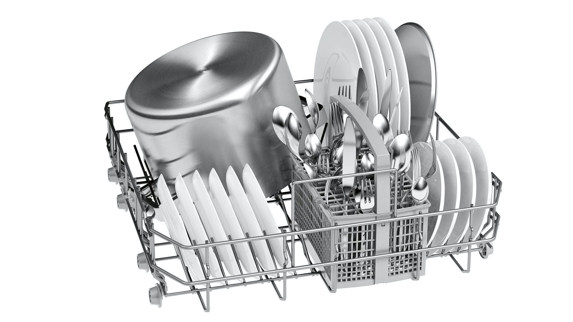 Bosch SMS25AW07E. Geräteplatzierung: Freistehend, Produktgröße: Standardgröße (60 cm), Türfarbe: Weiß. Anzahl Maßgedecke: 12 Maßgedecke, Lärmemissionsklasse: C, Geräuschpegel: 48 dB. Höhenverstellbare Füße: 2 cm. Energieeffizienzklasse: F, Wasserverbrauch pro Zyklus: 11,7 l, Energieverbrauch für 100 Zyklen: 102 kWh. Breite: 600 mm, Tiefe: 600 mm, Höhe: 845 mm