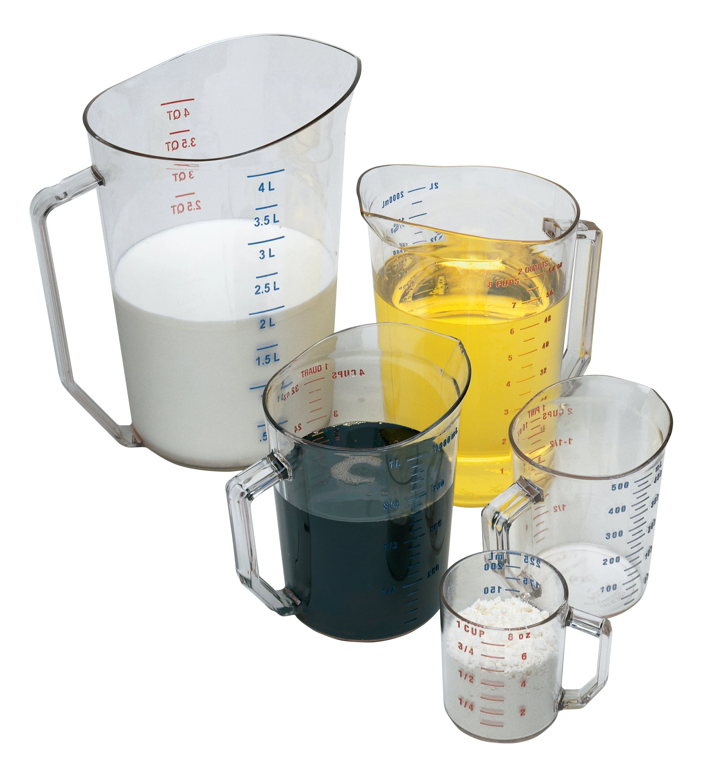 Zum Abmessen von Flüssigunzen, Pints, Quarts und Litern.Die Messbecher gewährleisten stets akkurates Abmessen, da sie nicht wie Metall verbeulen.Außen angebrachte, eingegossene Maßskala im US- und metrischen Standard.Hergestellt aus robustem, praktisch unzerbrechlichem Camwear® Polycarbonat.Der eingegossene Griff bricht nicht ab.