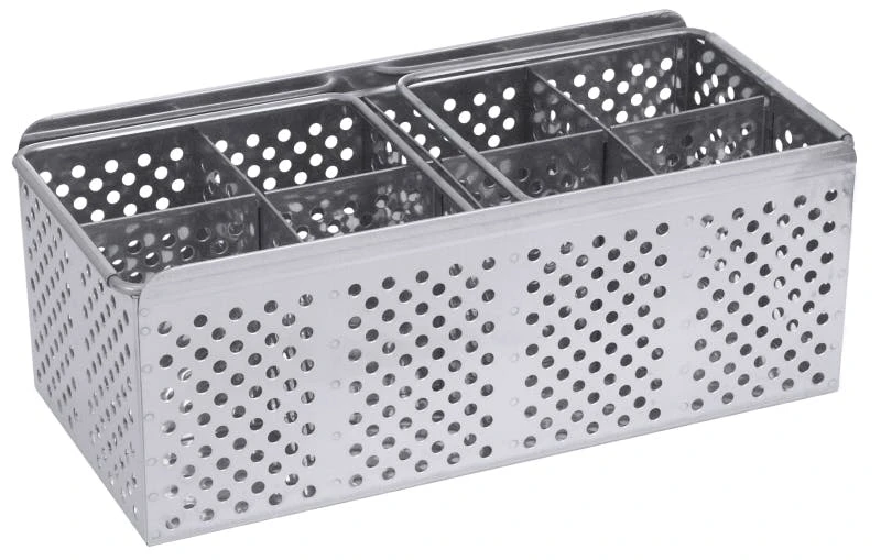 Besteckspülkorb mit 12 Fächern, aus Edelstahl 18/10, hochglänzend, mit Tragebügeln, spülmaschinenfest, mit 6 mm Lochung, schwere Qualität