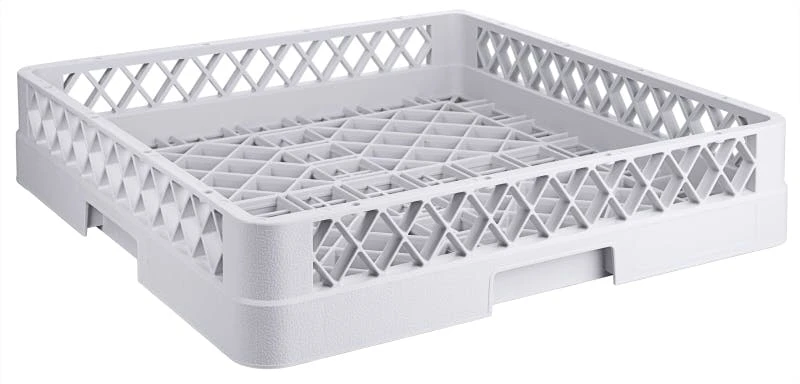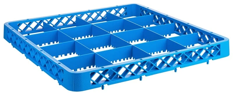 Erweiterungselement passend auf Geschirrspülkorb GLAS/TASSE 2518/009, mit Facheinteilung aus hellgrauem Polypropylen, DIN 66075-F (50 x 50 cm), stapelbar, hitzeresistent bis +120°C, durch blaue Aufsätze lässt sich die Nutzhöhe um jeweils 4 cm erweitern
