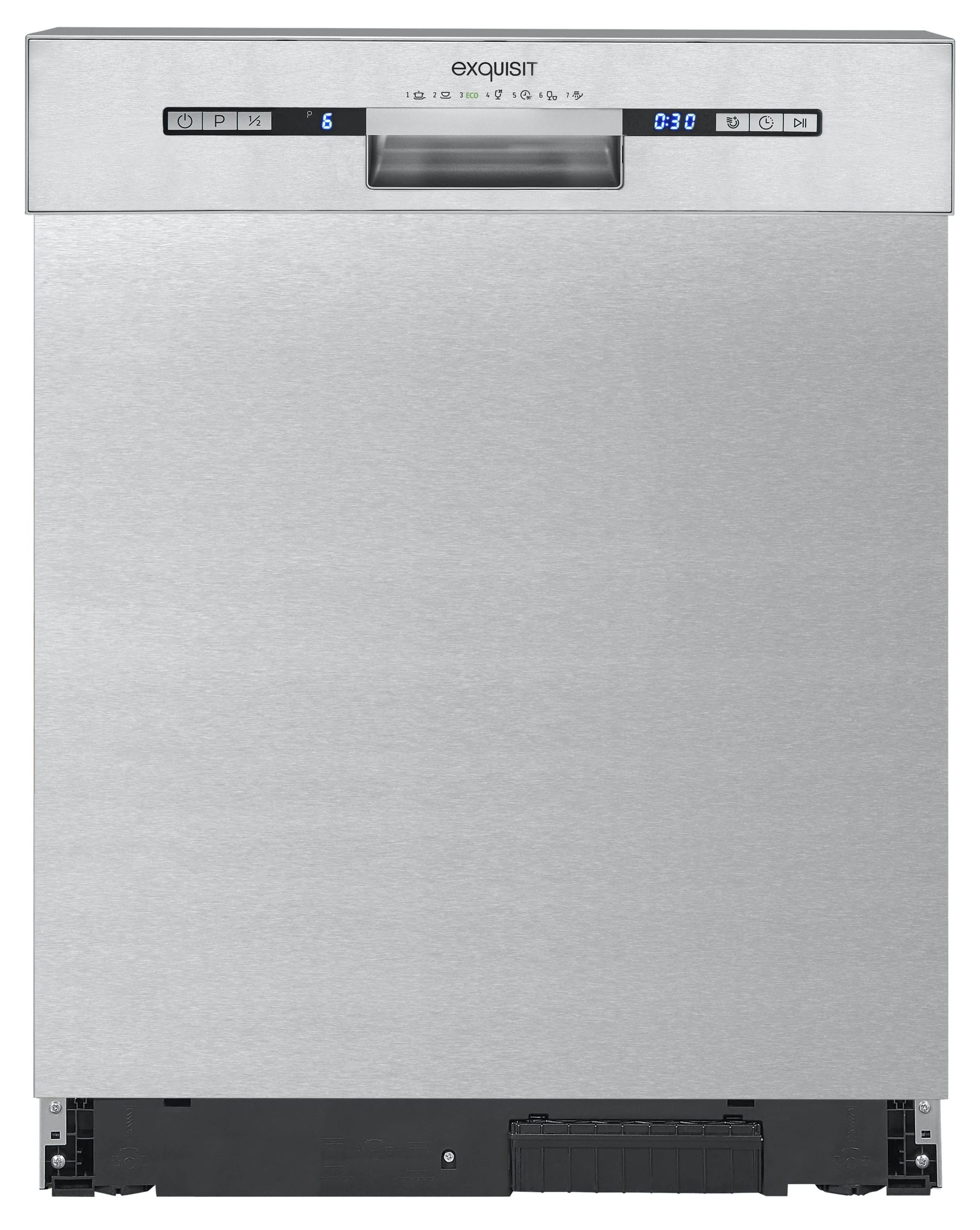 Der EGSP9309-EF-030E inox ist ein Unterbau-Geschirrspüler und begeistert mit zahlreichen Funktionen und umfangreicher Ausstattung. Als Einbaugerät integriert es sich optimal in Ihre vorhandene Küche. Das Volumen des Geschirrspülers beträgt 9 Maßgedecke. Der Inhalt eines solchen Gedecks ist durch eine spezielle Norm (DIN EN 50242) festgelegt. Eine Energieklasse E (Skala Energieeffizienzklasse A bis G) schont nicht nur die Umwelt, sondern auch Ihre Geldbörse. Der Energieverbrauch im Standard-Reinigungszyklus liegt im Durchschnitt bei 0,704 kWh/Zyklus. Bei Nutzung benötigt das Gerät 9,0 L/Zyklus. Die Maße des Gerätes betragen 82,0 x 45,0 x 54,0 cm (Höhe/Breite/Tiefe). Der EGSP9309-EF-030E inox bietet 7 unterschiedliche Spülprogramme. Je nach zu reinigendem Inhalt und Verschmutzungsgrad können Sie einfach und bequem das ideale Programm wählen. Die entsprechende Spültemperatur bewegt sich je nach Spülprogramm in dem Bereich von kalt – 70 °C. Besonders für kleinere oder Single-Haushalte empfiehlt sich die Halbe-Beladung-Funktion des EGSP9309-EF-030E inox, da man mit ihm bei einer teilbeladenen Maschine deutlich an Wasser sparen kann, ohne die Reinigungsleistung zu reduzieren. Die elektronische Salzmangelanzeige zeigt Ihnen auf einen Blick, ob sie Salz nachfüllen müssen. Ein umständliches Kontrollieren direkt am Salzbehälter entfällt somit. Kalkflecken werden Dank der elektronischen Klarspülermangelanzeige vermieden. Diese zeigt Ihnen direkt an, wenn Sie Klarspüler nachfüllen müssen. Der entnehmbare Korb bietet Ihnen vielseitigen Platz für Ihr Besteck. Das eingebaute Display unterrichtet Sie über den aktuellen Status Ihres Geschirrspülers. Über die Restlaufzeitanzeige wissen Sie fortlaufend wie lange das aktuelle Programm noch läuft. Damit bei einem Defekt des Gerätes kein Wasser austritt, ist der Geschirrspüler jederzeit mit einem Aqua-Stopp nachrüstbar. Der Geschirrspüler EGSP9309-EF-030E inox überzeugt mit seinen Eigenschaften und bietet Ihnen Qualität zum guten Preis.