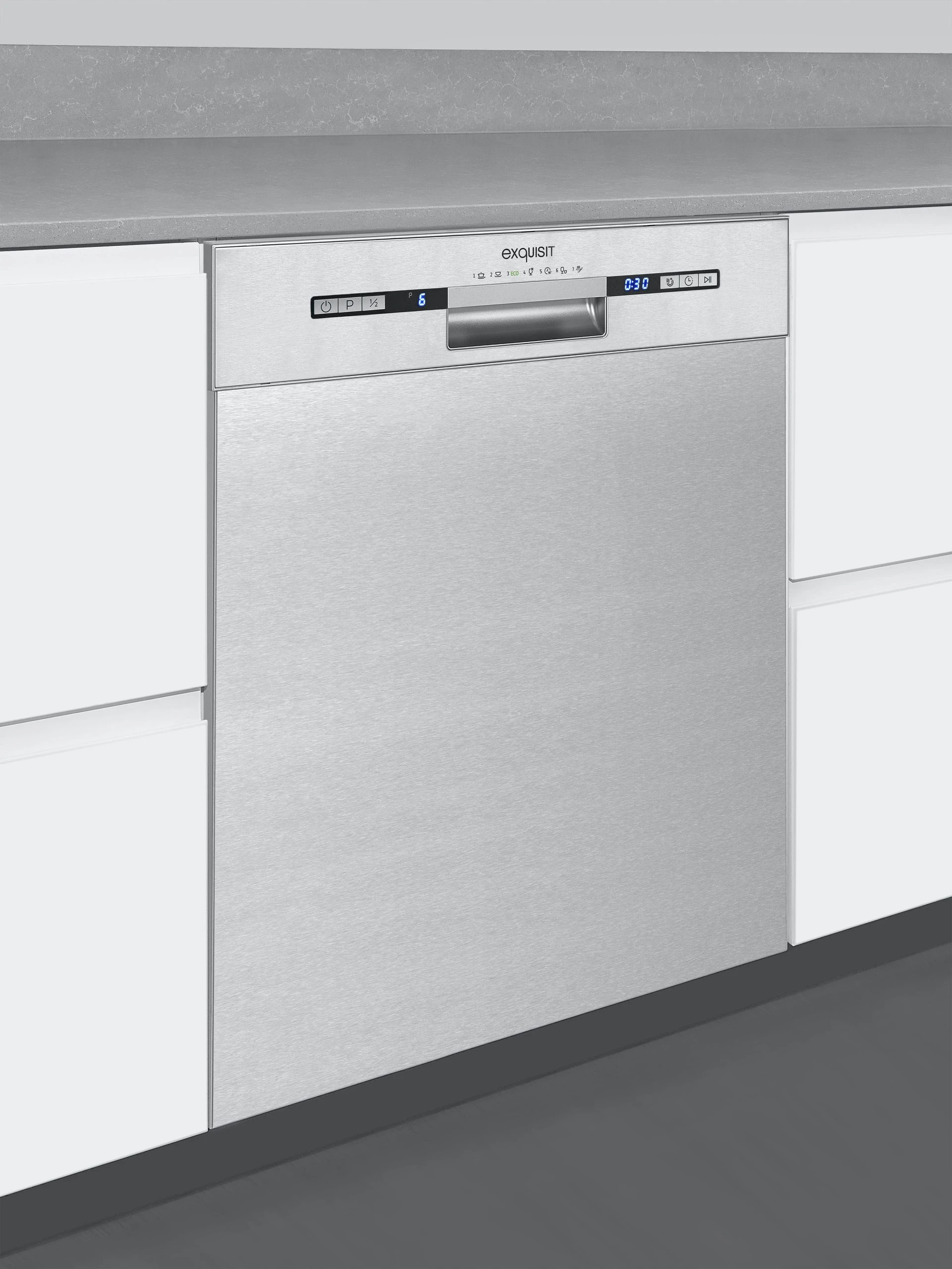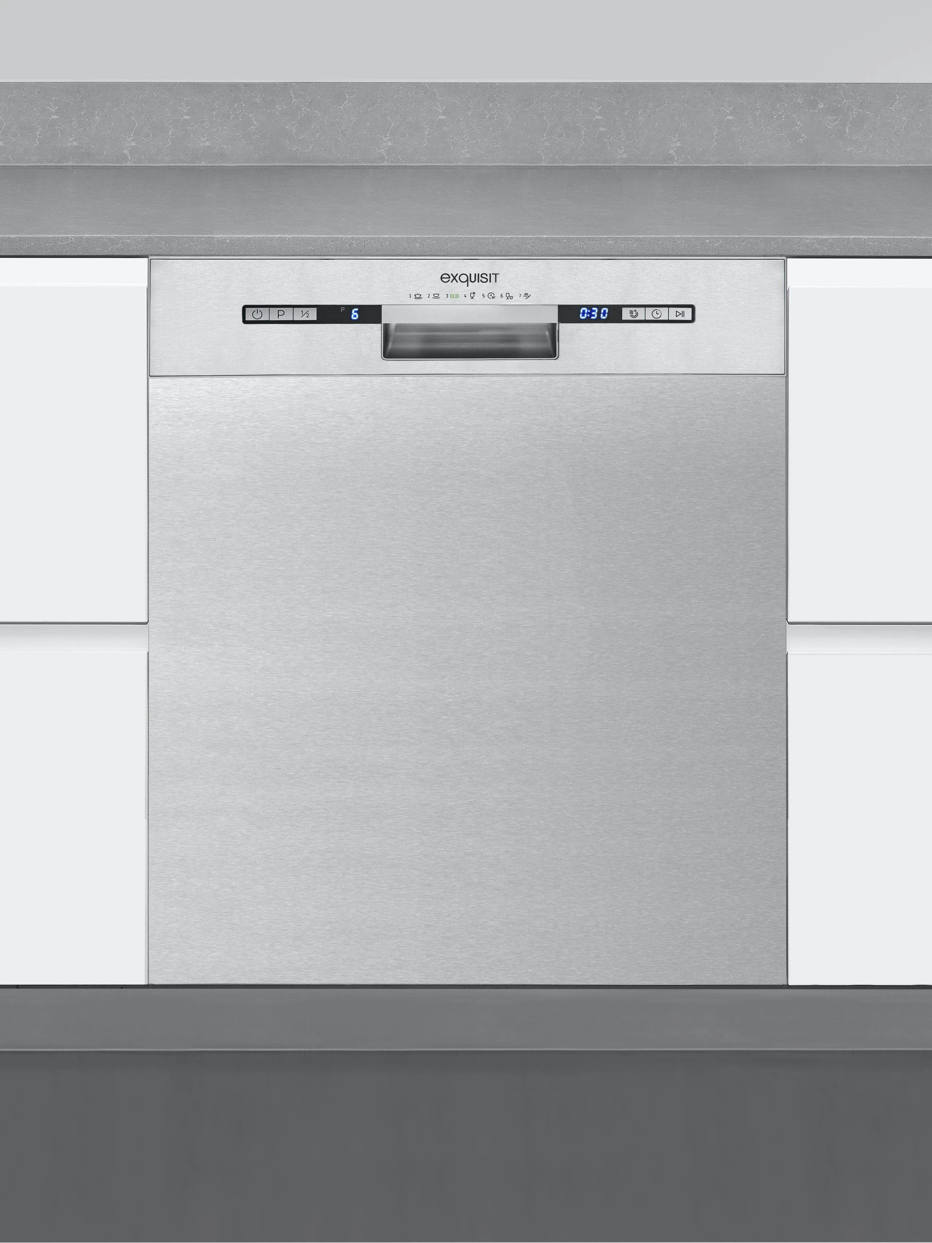 Der EGSP9313-EF-030E inox ist ein Unterbau-Geschirrspüler und begeistert mit zahlreichen Funktionen und umfassender Ausstattung. Das Gerät passt sich als Einbaugerät nahtlos in Ihre exisiterende Küchenzeile ein. Das Volumen des Geschirrspülers beträgt 12 Maßgedecke. Der Inhalt eines solchen Gedecks ist durch eine spezielle Norm (DIN EN 50242) festgelegt. Das Gerät verfügt über die Energieklasse E (Skala Energieeffizienzklasse A bis G). Der Energieverbrauch im Standard-Reinigungszyklus bewegt sich im Durchschnitt bei 0,937 kWh/Zyklus. Bei Verwendung verbraucht das Gerät 11,0 L/Zyklus. Das Gerät für sich hat folgende Ausmaße: 81,5 x 59,8 x 57,0 cm (Höhe/Breite/Tiefe). Der EGSP9313-EF-030E inox bietet 7 unterschiedliche Spülprogramme. Je nach zu reinigendem Inhalt und Verschmutzungsgrad können Sie einfach und komfortabel das ideale Programm wählen. Die sinnvolle Spültemperatur bewegt sich je nach Spülprogramm in dem Bereich von kalt – 70 °C. Insbesondere für kleinere oder Single-Haushalte lohnt sich die Halbe-Beladung-Funktion des EGSP9313-EF-030E inox, da man mit ihm bei einer teilbeladenen Maschine erheblich an Wasser sparen kann, ohne die Reinigungsleistung zu reduzieren. Die elektronische Salzmangelanzeige zeigt Ihnen auf einen Blick, ob sie Salz auffüllen müssen. Ein umständliches Kontrollieren direkt am Salzbehälter entfällt somit. Damit Ihre Gläser nach jeder Reinigung strahlen, zeigt Ihnen die elektronische Klarspülermangelanzeige, wenn Sie Klarspüler nachfüllen müssen. Der entnehmbare Korb bietet Ihnen vielseitigen Platz für Ihr Besteck. Das eingebaute Display informiert Sie über den aktuellen Status Ihres Geschirrspülers. Wie lange das ausgewählte Spülprogramm noch benötigt, erfahren Sie mittels der Restlaufzeitanzeige. Das Gerät ist jederzeit mit einem Aqua-Stopp nachrüstbar, um den Wasseraustritt bei einem eventuellen Defekt zu unterbinden. Der Geschirrspüler EGSP9313-EF-030E inox bietet Ihnen zuverlässige Qualität zu einem guten Preis.