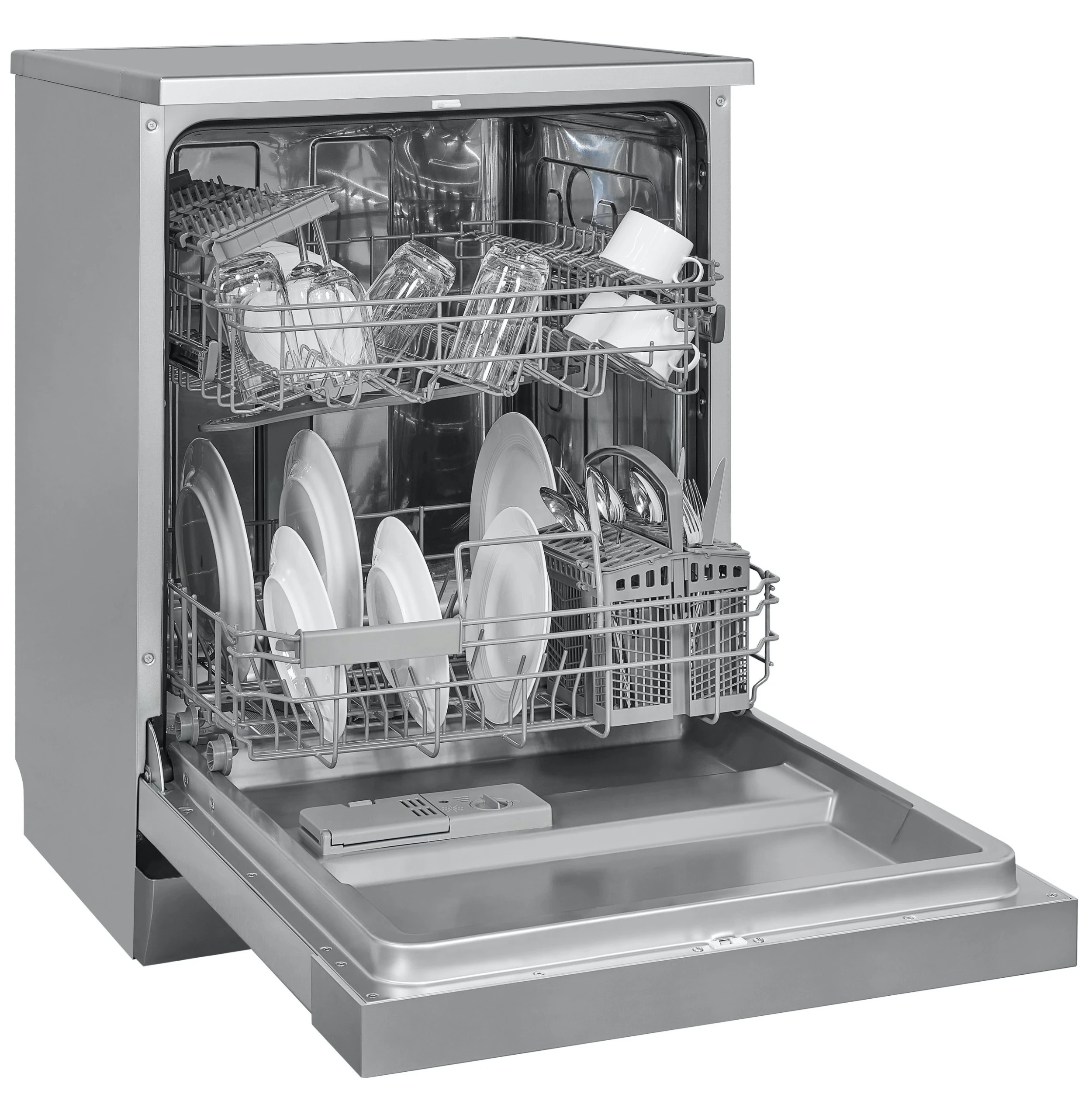 Der GSP9313-030E silber ist ein freistehender Geschirrspüler und überzeugt mit zahlreichen Funktionen und umfassender Ausstattung. Durch seine freistehende Bauart lässt sich das Gerät an jedem Platz aufstellen und an Waser bzw. Strom anschließen. Das Fassungsvermögen des Geschirrspülers beträgt 10 Maßgedecke. Die Energieklasse E (Skala Energieeffizienzklasse A bis G) des Gerätes begeistert nicht nur Sie, sondern auch die Umwelt. Der Energieverbrauch im Standard-Reinigungszyklus bewegt sich durchschnittlich bei 0,94 kWh/Zyklus. Bei Verwendung verbraucht das Gerät 11,0 L/Zyklus. Das Gerät besitzt die Maße 85,0 x 44,8 x 59,8 cm (Höhe/Breite/Tiefe). Der GSP9313-030E verfügt über 7 unterschiedliche Spülprogramme. Je nach zu reinigendem Inhalt und Verschmutzungsgrad können Sie einfach und komfortabel das bestmögliche Programm wählen. Die jeweilige Spültemperatur bewegt sich je nach Spülprogramm in dem Bereich von 30 – 65 °C. Die elektronische Salzmangelanzeige zeigt Ihnen auf einen Blick, ob sie Salz nachfüllen müssen. Ein umständliches Kontrollieren direkt am Salzbehälter entfällt somit. Damit Ihre Gläser nach jeder Reinigung strahlen, sagt Ihnen die elektronische Klarspülermangelanzeige, wenn Sie Klarspüler auffüllen müssen. Der herausnehmbare Korb bietet Ihnen umfassenden Platz für Ihr Besteck. Das eingebaute Display unterrichtet Sie über den aktuellen Status Ihres Geschirrspülers. Über die Restlaufzeitanzeige wissen Sie fortlaufend wie lange das aktuelle Programm noch läuft. Der Wasserauslaufschutz verhindert, dass bei einem Fehler des Geschirrspülers Wasser austreten kann. Der Geschirrspüler begeistert mit seinen Funktionen und bietet Ihnen Qualität zum guten Preis.