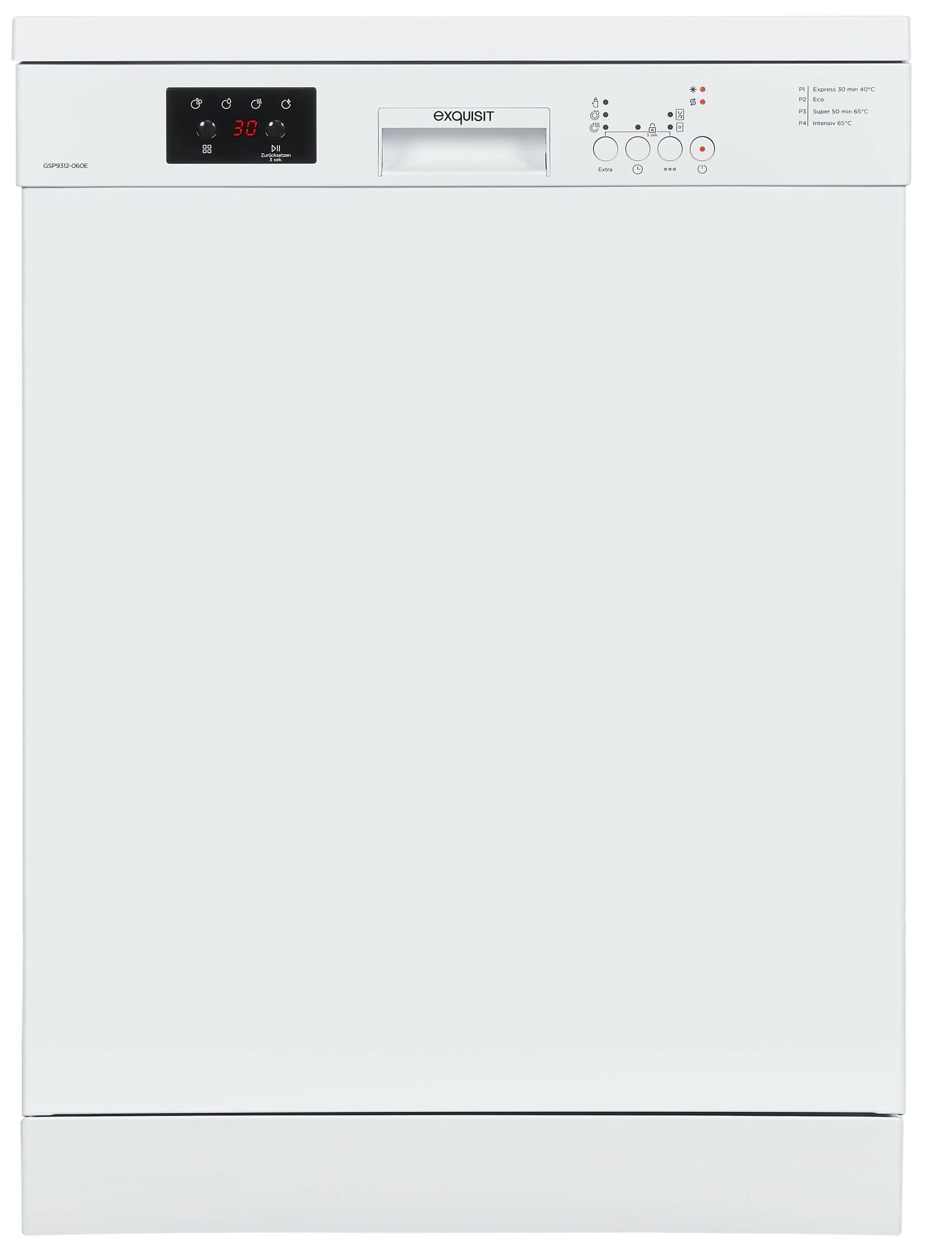Der GSP9312-060E weiss ist ein freistehender Geschirrspüler und überzeugt mit zahlreichen Funktionen und umfassender Ausstattung. Durch seine freistehende Bauart lässt sich das Gerät an jedem Platz aufstellen und an Waser bzw. Strom anschließen. Das Fassungsvermögen des Geschirrspülers beträgt 12 Maßgedecke. Die Energieklasse E (Skala Energieeffizienzklasse A bis G) des Gerätes begeistert nicht nur Sie, sondern auch die Umwelt. Der Energieverbrauch im Standard-Reinigungszyklus bewegt sich durchschnittlich bei 0,92 kWh/Zyklus. Bei Verwendung verbraucht das Gerät 12,0 L/Zyklus. Das Gerät besitzt die Maße 85,0 x 59,8 x 59,8 cm (Höhe/Breite/Tiefe). Der GSP9312-060E weiss verfügt über 4 unterschiedliche Spülprogramme. Je nach zu reinigendem Inhalt und Verschmutzungsgrad können Sie einfach und komfortabel das bestmögliche Programm wählen. Die jeweilige Spültemperatur bewegt sich je nach Spülprogramm in dem Bereich von 40 – 65 °C. Die elektronische Salzmangelanzeige zeigt Ihnen auf einen Blick, ob sie Salz nachfüllen müssen. Ein umständliches Kontrollieren direkt am Salzbehälter entfällt somit. Damit Ihre Gläser nach jeder Reinigung strahlen, sagt Ihnen die elektronische Klarspülermangelanzeige, wenn Sie Klarspüler auffüllen müssen. Der herausnehmbare Korb bietet Ihnen umfassenden Platz für Ihr Besteck. Das eingebaute Display unterrichtet Sie über den aktuellen Status Ihres Geschirrspülers. Über die Restlaufzeitanzeige wissen Sie fortlaufend wie lange das aktuelle Programm noch läuft. Der Wasserauslaufschutz verhindert, dass bei einem Fehler des Geschirrspülers Wasser austreten kann. Der Geschirrspüler GSP9312-060E weiss begeistert mit seinen Funktionen und bietet Ihnen Qualität zum guten Preis.