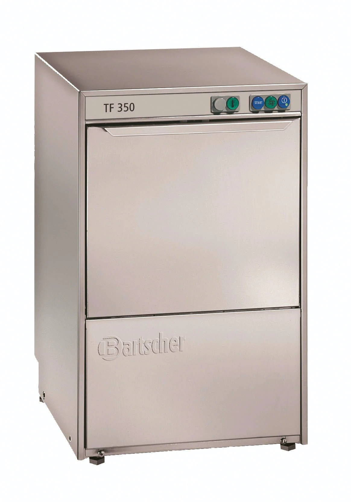 Deltamat TF 350 LPMaße B 415 x T 465 x H 670 mmAusführung CNS 18/10Max. Leistung h 30 KörbeKorbabmessungen 350 x 350 mmKlarspüldosierpumpe jaTürkontaktschalter jaTrockenlaufschutz jaGesamtanschlusswert 2,59 kW / 230 V 50 HzTankheizung 1,85 kWBoilerheizung 2,4 kWLaufzeit 120 SekundenWasserverbrauch bei 2 bar 1,4 LiterTankinhalt 12 LiterWasserdruck 2-4 barWasserzulauf G 3/4”MWasserablauf Ø 24 mmZubehör 1 Untertasseneinsatz1 Besteckköcher2 Gläserkörbe