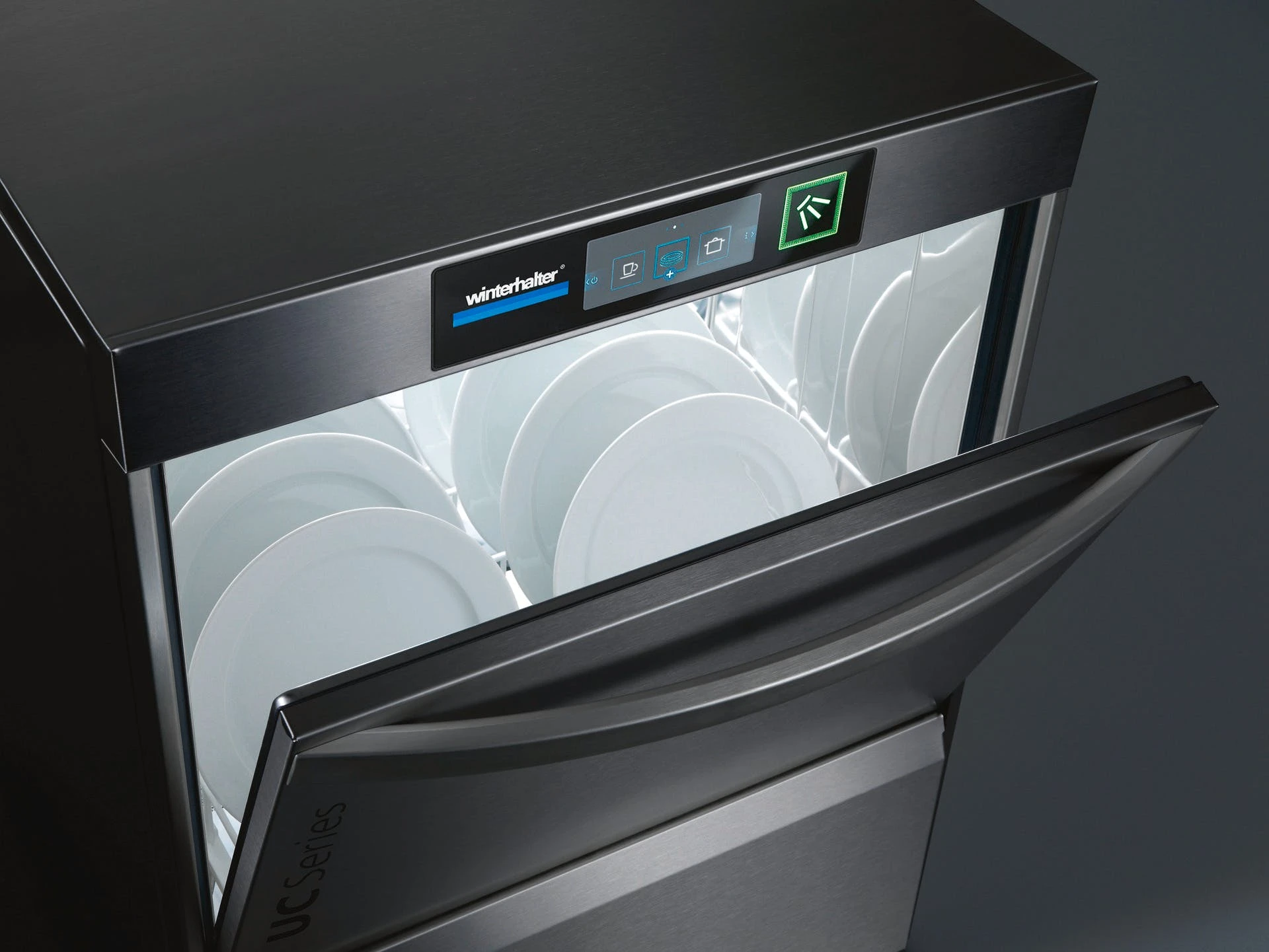 Winterhalter Geschirrspülmaschine UC-L mit eingebauter Enthärtung und Sauglanzen. 400 Volt, 7,9 kW / 230 Volt, 3,2 kW.