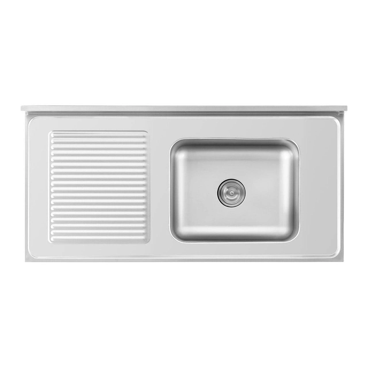 Extra tiefer Edelstahl Spültisch mit Unterschrank und Spritzschutz Der Spülenschrank RC-IKS07 von Royal Catering ist die ideale Lösung für Großküchen, Restaurants oder Schulen, Krankenhäuser und Laboratorien. Der robuste Spülenunterschrank ist komplett aus Edelstahl und überzeugt durch eine durchdachte Konstruktion.Der kompakt gestaltete Spülschrank besitzt ein großes Spülbecken, in dem auch große und sperrige Töpfe, Pfannen oder Grillroste problemlos Platz finden. Das Becken mit den Maßen 500 x 400 x 260 mm verfügt über einen Ablauf mit Siebeinsatz. Außerdem schützt die praktische Aufkantung von 100 mm Fliesen und Wände vor Spritzwasser. Ausgestattet mit praktischen Schiebetüren lässt sich der Spülenschrank mit Spüle selbst in engen Räumlichkeiten platzsparend verwenden. Alle untergebrachten Utensilien bleiben hygienisch und dank der leichtläufigen Türen zugänglich verstaut. Der Spülschrank ist komplett aus beständigem Edelstahl gefertigt. Das Material ist besonders robust und passt mit seinem zeitlosen Design in jede Küche. Außerdem lassen sich Edelstahlmöbel schnell und einfach reinigen. Dabei profitieren Sie vom langlebigen Metall, das nicht nur auf Dauer seinen Glanz behält, sondern darüber hinaus in hohem Maße korrosionsbeständig ist. Dank der um 20 mm höhenverstellbaren Füße kann das Spülbecken mit Unterschrank optimal auf individuelle Bedürfnisse angepasst werden.Technische DetailsMaterial: EdelstahlAnzahl Becken: 1 Abmessungen Becken: 500 x 400 x 260 mmHöhe Abkantung: 100 mmEinstellungsbereich Füße: 20 mmLieferumfangSpülenschrank RC-IKS07, Montagematerial, Bedienungsanleitung