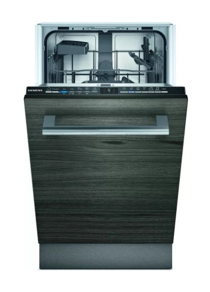 Siemens iQ100 SR61IX05KE. Geräteplatzierung: Voll integriert, Produktgröße: Single (45 cm breit), Türfarbe: Schwarz. Anzahl Maßgedecke: 9 Maßgedecke, Lärmemissionsklasse: C, Geräuschpegel: 48 dB. Höhenverstellbare Füße: 6 cm. Energieeffizienzklasse: F, Wasserverbrauch pro Zyklus: 9,5 l, Energieverbrauch für 100 Zyklen: 78 kWh. Breite: 448 mm, Tiefe: 550 mm, Höhe: 815 mm