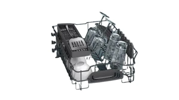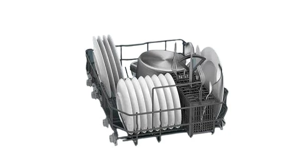 Siemens iQ300 SR23HI48KE. Geräteplatzierung: Freistehend, Produktgröße: Single (45 cm breit), Türfarbe: Edelstahl. Anzahl Maßgedecke: 9 Maßgedecke, Lärmemissionsklasse: C, Geräuschpegel: 46 dB. Control Apps werden unterstützt: Siemens Home Connect. Energieeffizienzklasse: E, Wasserverbrauch pro Zyklus: 8,5 l, Energieverbrauch für 100 Zyklen: 70 kWh. Breite: 450 mm, Tiefe: 600 mm, Höhe: 845 mm