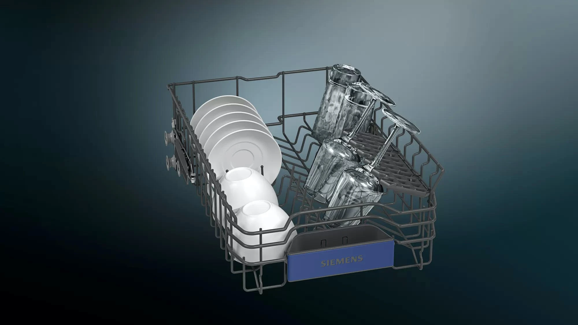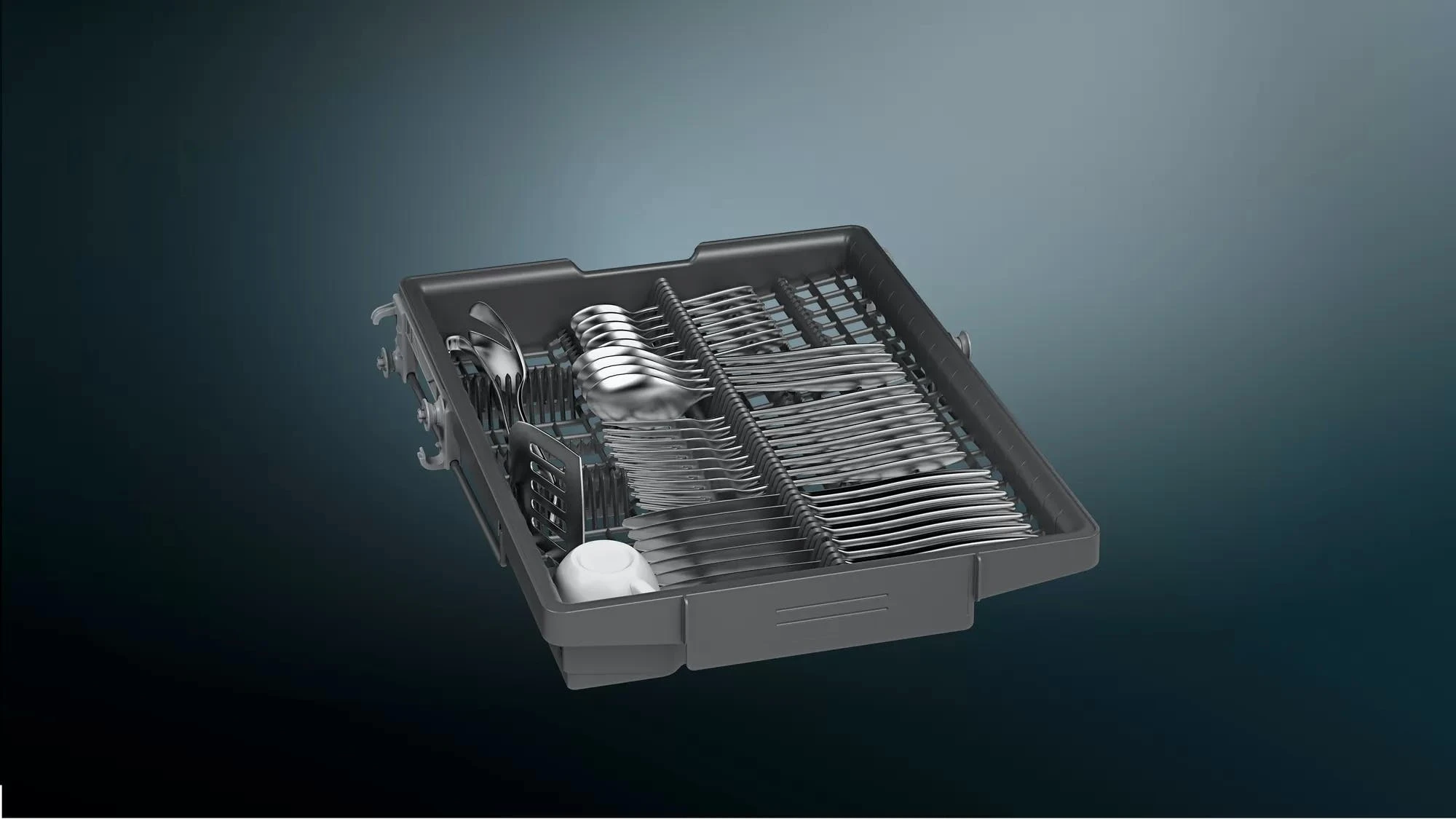 Siemens iQ300 SR43HS76ME. Geräteplatzierung: Unterbau, Produktgröße: Single (45 cm breit), Türfarbe: Edelstahl. Anzahl Maßgedecke: 10 Maßgedecke, Lärmemissionsklasse: B, Geräuschpegel: 44 dB. Control Apps werden unterstützt: Siemens Home Connect. Energieeffizienzklasse: E, Wasserverbrauch pro Zyklus: 9,5 l, Energieverbrauch für 100 Zyklen: 76 kWh. Breite: 448 mm, Tiefe: 573 mm, Höhe: 815 mm