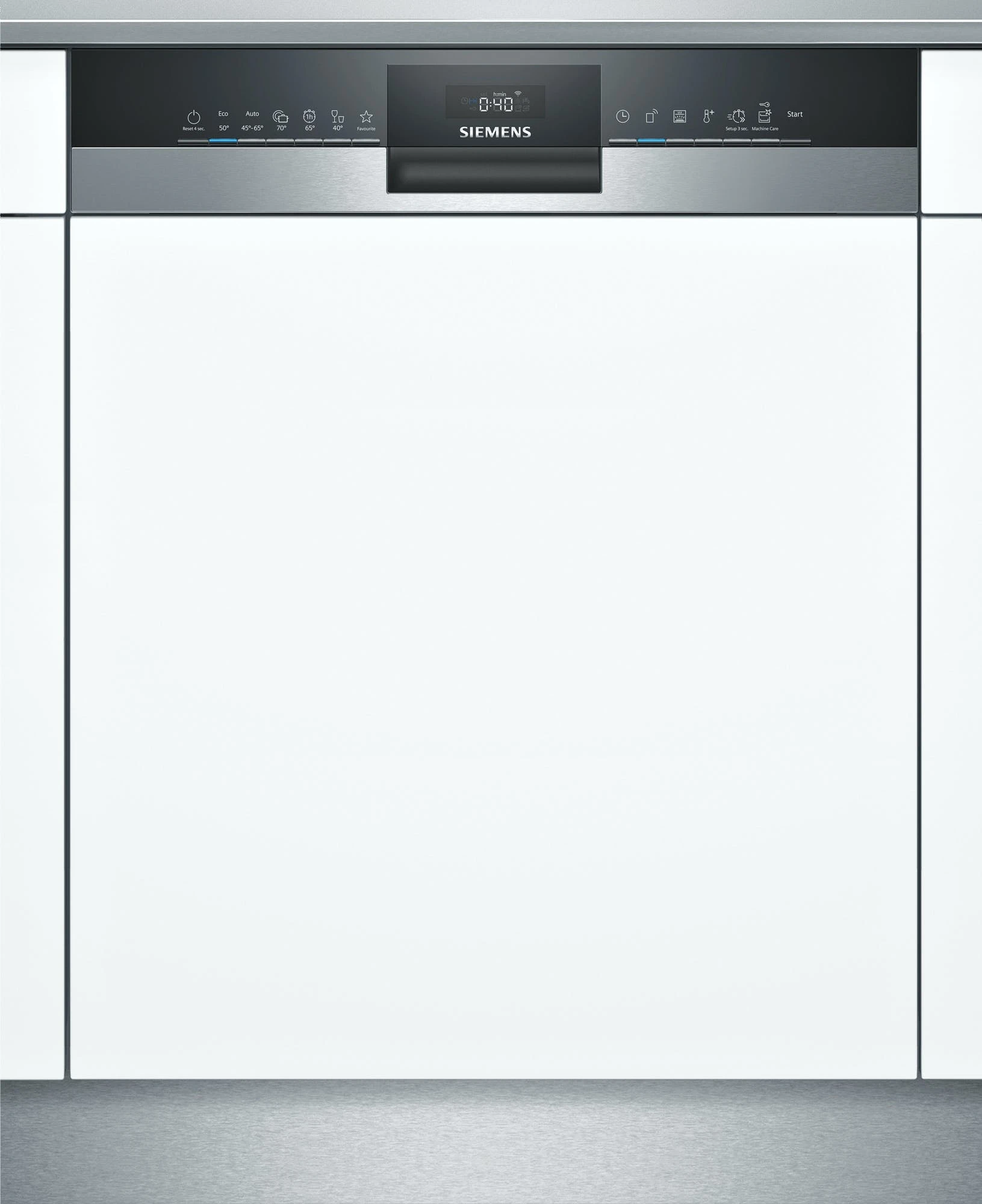 Siemens iQ300 SR53HS76ME. Geräteplatzierung: Halb integriert, Produktgröße: Single (45 cm breit), Bedienfeld Farbe: Schwarz. Anzahl Maßgedecke: 10 Maßgedecke, Lärmemissionsklasse: B, Geräuschpegel: 44 dB. Control Apps werden unterstützt: Siemens Home Connect. Energieeffizienzklasse: E, Wasserverbrauch pro Zyklus: 9,5 l, Energieverbrauch für 100 Zyklen: 76 kWh. Breite: 448 mm, Tiefe: 573 mm, Höhe: 815 mm